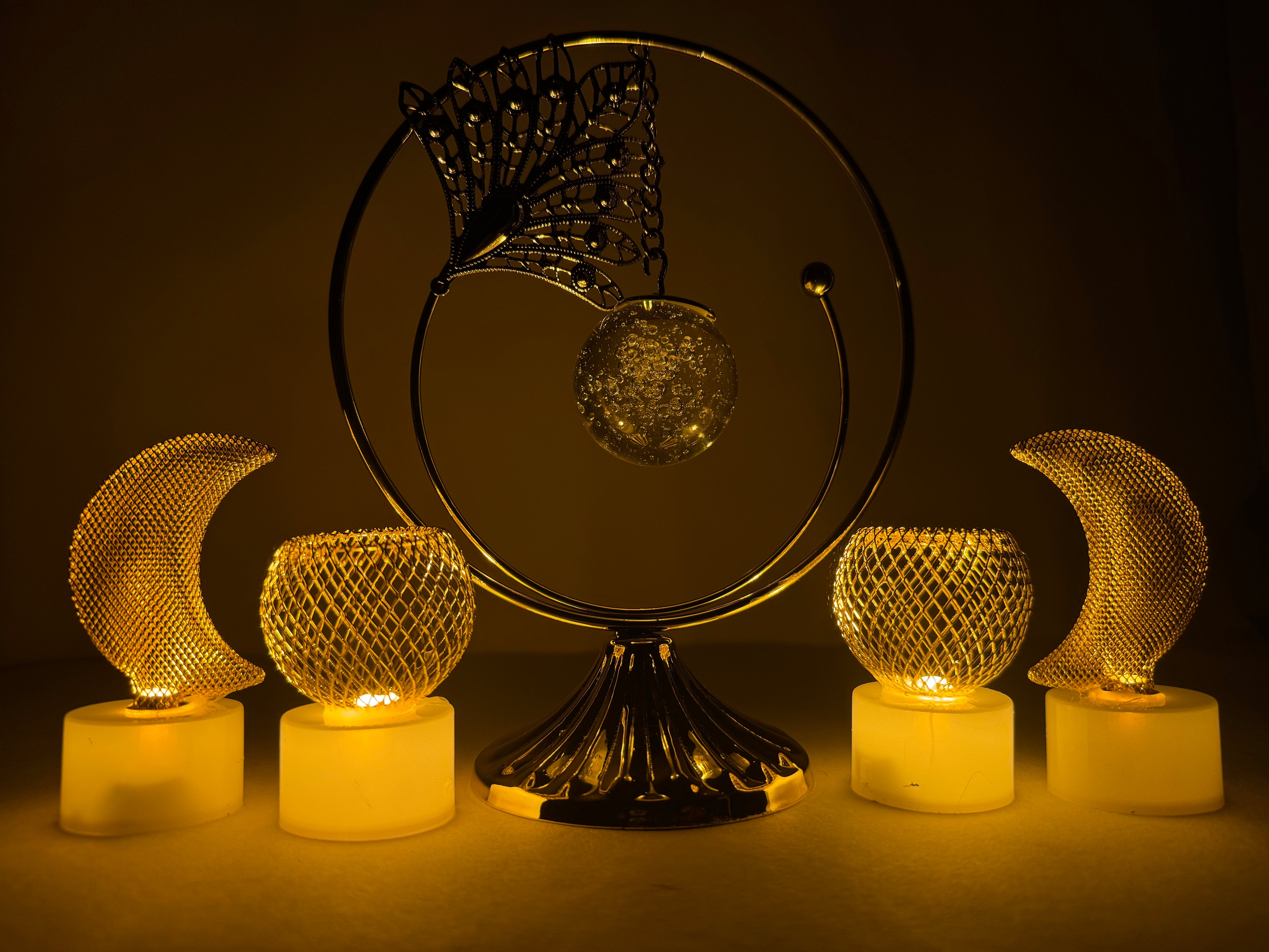 Elegant Metal Leafe Showpiece with Crystal Ball | Decorative Home & Office Table Accent