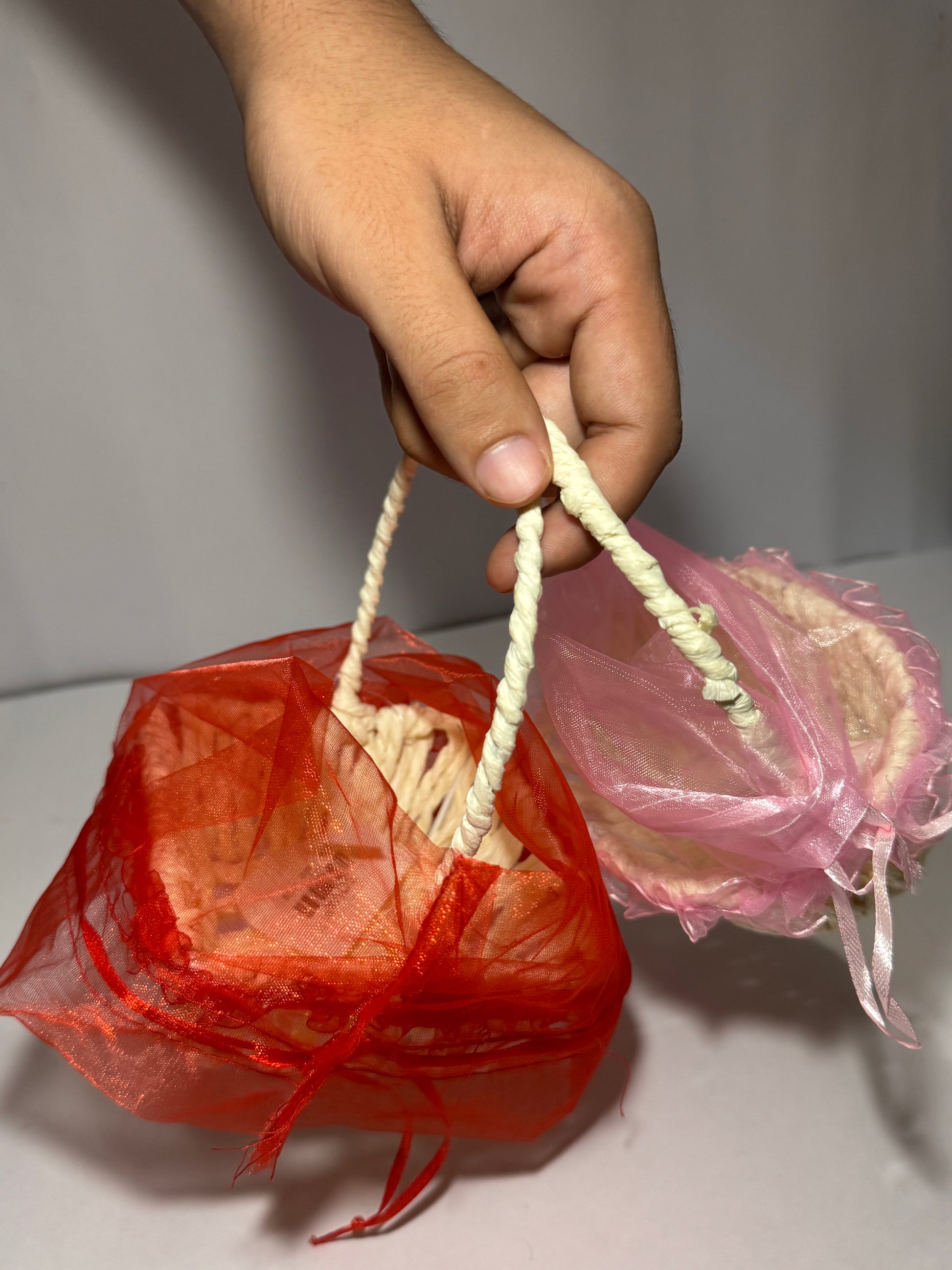 Handmade Decorative Potli Gift Basket with Net Cover โ Red Oval (2 PC Set)